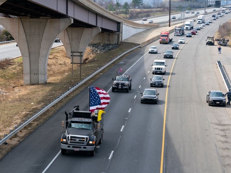 Veliki broj vozača kamiona koji se protive antikovid merama izvezli su dva kruga kružnim putem oko Vašingtona, namerno se krećući sporo kako bi usporili saobraćaj i skrenuli na sebe pažnju američkih kongresmena na Kapitol hilu.
